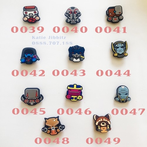- Nút sticker Jibbitz siêu nhân, siêu anh hùng Marvel, nhóm nhạc BTS