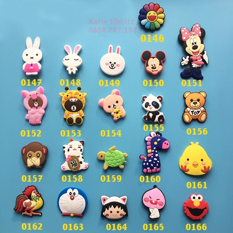 mẫu sticker gắn giày dép Crocs Jibbitz trong album các loại nút có sẵn tại cửa hàng, như: