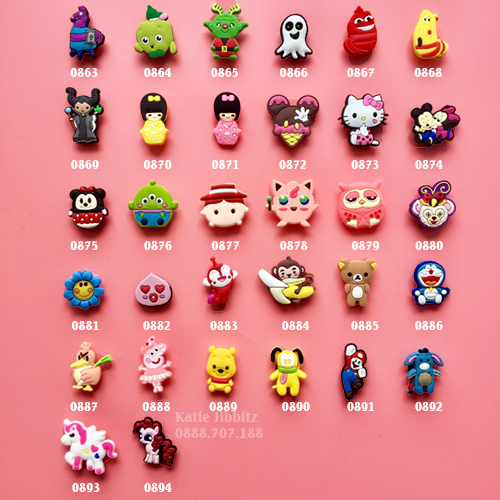 mẫu sticker gắn giày dép Crocs Jibbitz trong album các loại nút có sẵn tại cửa hàng, như:
