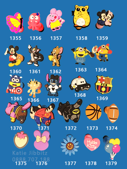 mẫu sticker gắn giày dép Crocs Jibbitz trong album các loại nút có sẵn tại cửa hàng, như: