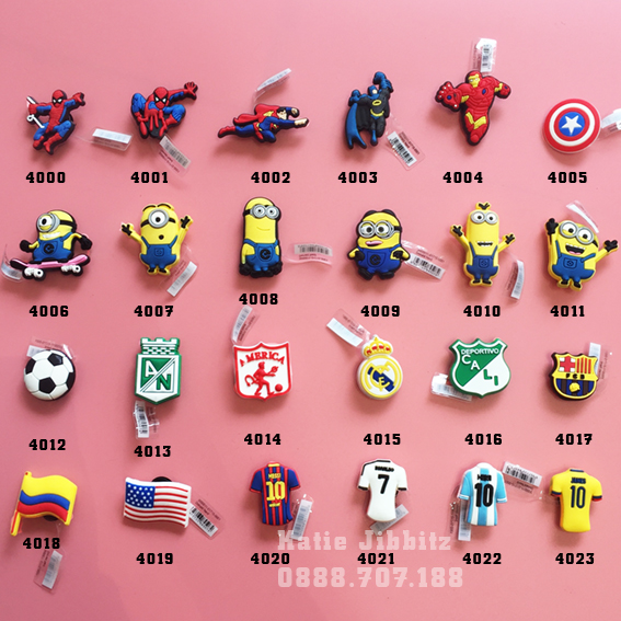 - Nút sticker Jibbitz siêu nhân, siêu anh hùng Marvel, nhóm nhạc BTS